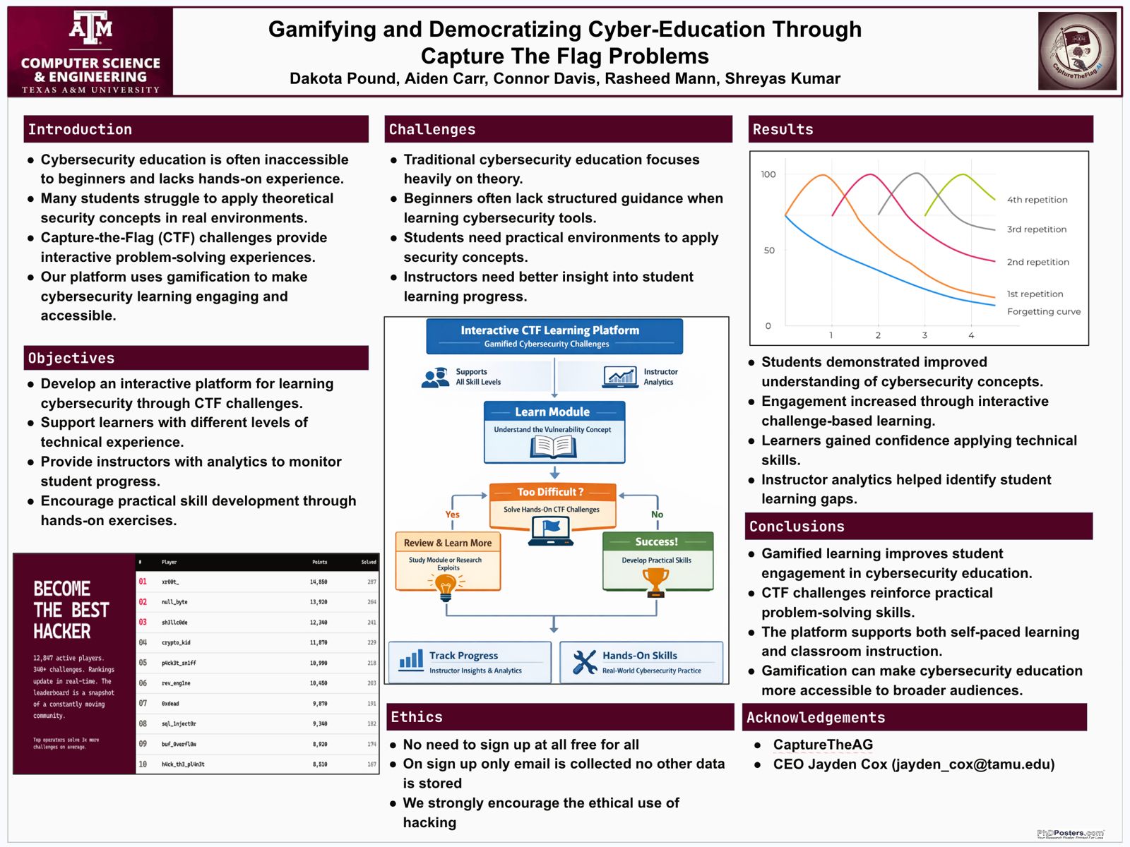 Dr. Shreyas Kumar, AGGIES Lab founder and director, is a Professor of Practice in Computer Science & Engineering at Texas A&M University, specializing in Cybersecurity, AI, and Risk Management. With 22 years of industry experience, he’s held leadership roles at Uber, Adobe, and Oracle. His research focuses on cyber warfare, AI-driven security, and cyber insurance. Dr. Kumar is also a Certified Information Systems Security Professional and serves on various boards, including the U.S. National Committee Technical Advisory Group for IEC/ISO Joint Technical Committee on Quantum Technologies
